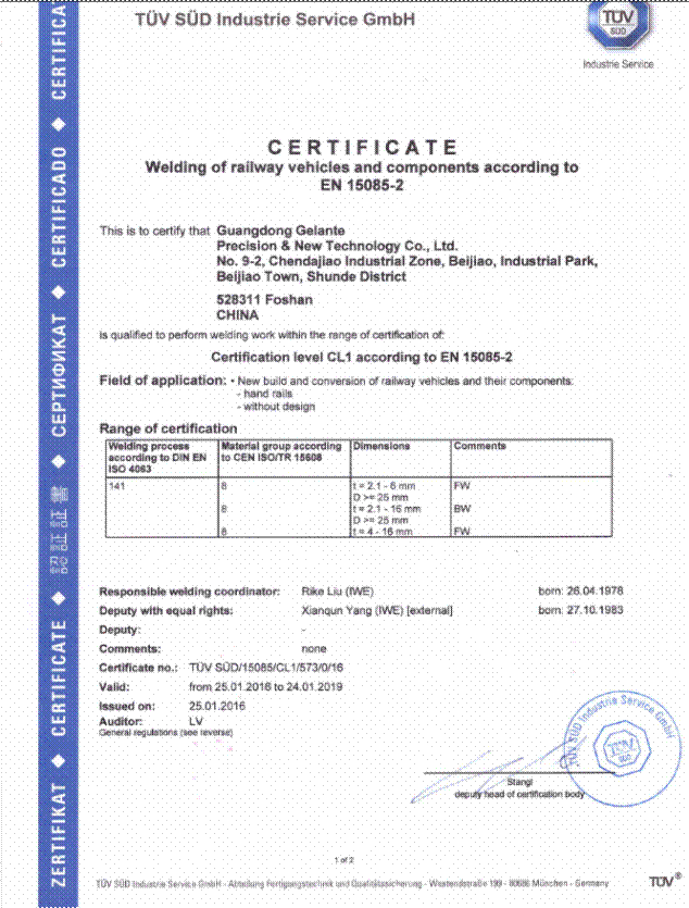 ★ 2015年通過(guò)EN15085-2國(guó)際焊接鐵路認(rèn)證