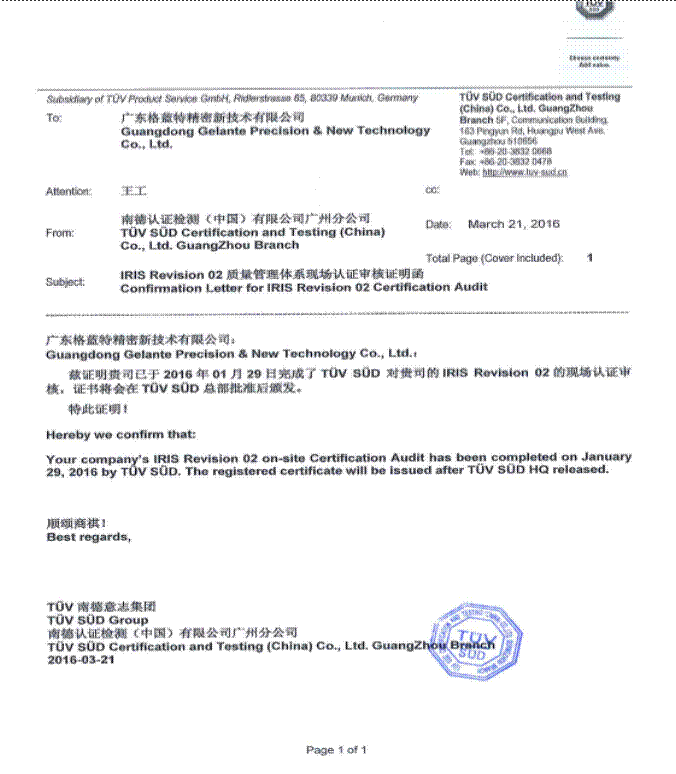 ★ 2016年通過(guò)IRIS國(guó)際鐵路認(rèn)證